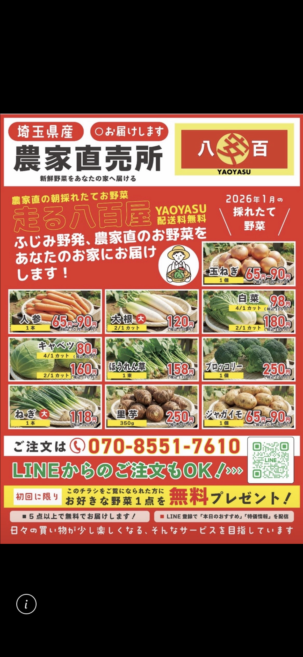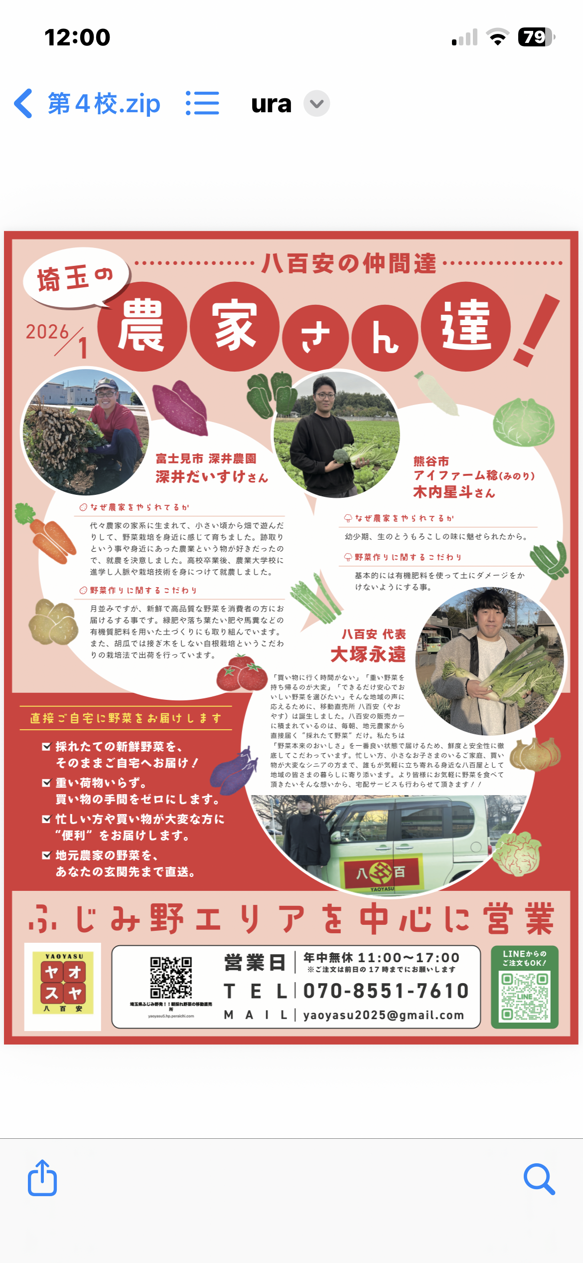 「 買 い 物 に 行 く 時 間 が な い 」 「 重 い 野 菜 を 持 ち 帰 る の が大 変 」 「 で き る だ け 安 心 お い し い 野 菜 を 選 び た い 」そん な 地 域 の 声 に 応 え る た め に 、移 動 直 売 所 八 百 安( ヤオヤス) は 誕 生 し ま し た 。
